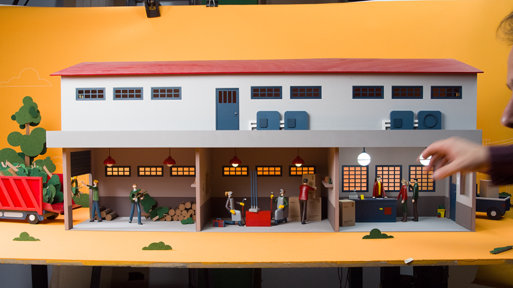 We interpreted their beautiful designs in a mixed media style, combining digital animation and live actions scale models.